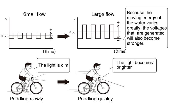 由于水的移動能量變化很大,所產生的電壓也會變得更強。