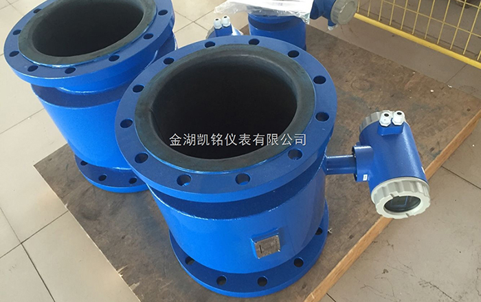 在結構上由電磁流量傳感器和轉換器兩部分組成。傳感器安裝在工業過程管道上,它的作用是將流進管道內的液體體積流量值線性地變換成感生電勢信號,并通過傳輸線將此信號送到轉換器。轉換器安裝在離傳感器不太遠的地方,它將傳感器送來的流量信號進行放大,并轉換成流量信號成正比的標準電信號輸出,以進行顯示,累積和調節控制。