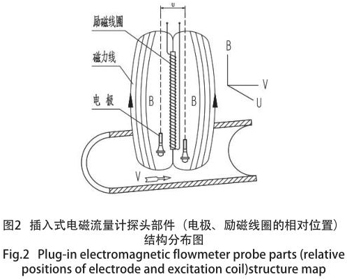 煤層注水流量計測量液體的流量時,液體為導電液體,電導率應大于 5μs/cm,流體流過垂直于流動方向的磁場導電液體的流動感應出平均流速,從而獲得與流體的體積流量成正比的感應電動勢(Es),感應電動勢方程為: