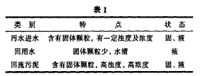 我廠是一座日處理能力8000噸的污水處理廠。在生產的過程中,有三處的流量需要精確測定:一是污水進水流量;二是污水經處理后再回用部分的流量;三是污泥回流流量。這三種液體各自具有不同的特點,詳見表l。
