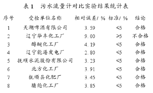 撫順市環(huán)保局在重點污染源單位中安裝了44臺化工污水流量計選型。其中,運轉的有39臺,運行比較正常的有14臺,通過對其中8臺所做對比實驗結果表明合格的有7臺,合格率為87.5%。